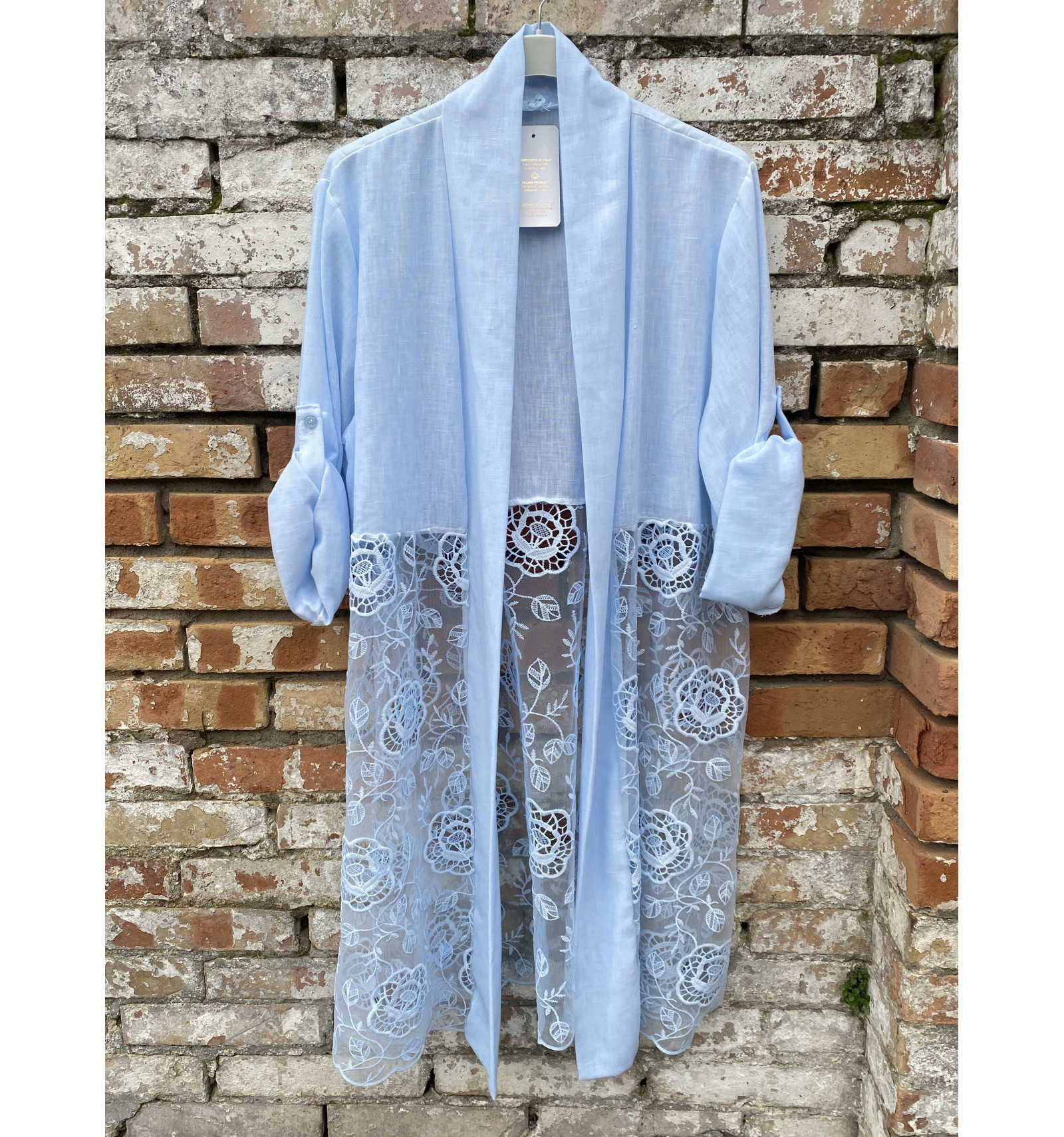 NUOVISSIMO SPOLVERINO IN COTONE CON ELAGANTISSIMO ABBASSAMENTO IN MACRAME', MANICA ACCORCIABILE, NO ABBOTTONATURA ANTERIORE COLORI PASTELLO DALLA SOBRIA PORTABILITA' E ADATTABILITA' NELLE OCCASIONI PIU' PARTICOLARI MA ANCHE PER RENDERE UNICO L'ABBIGLIAMENTO DI OGNI GIORNO