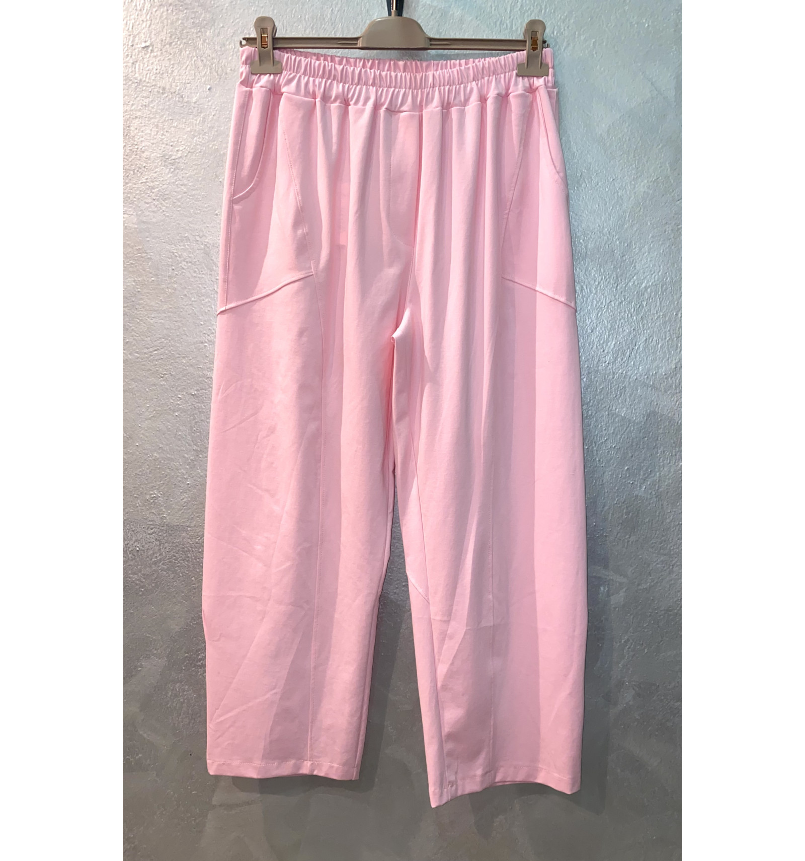 NUOVISSIMO PANTALONE PER LA MODA DI TUTTI I GIORNI DAI COLORI PASTELLO, IN MAGLIA PUNTO MILANO DI MEDIA PESANTEZZA, NERVATURE ANTERIORI CHE PROFILANO ANCHE LE COMODE TASCHE .